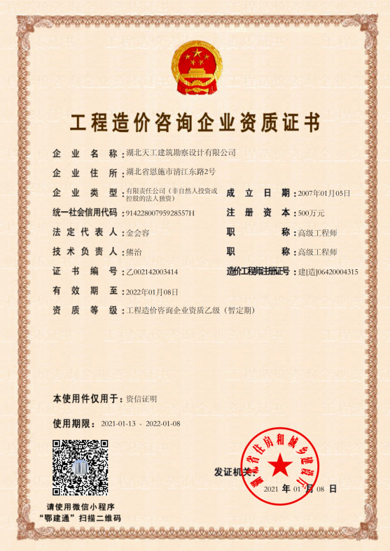 工程咨詢單位乙級資信證書