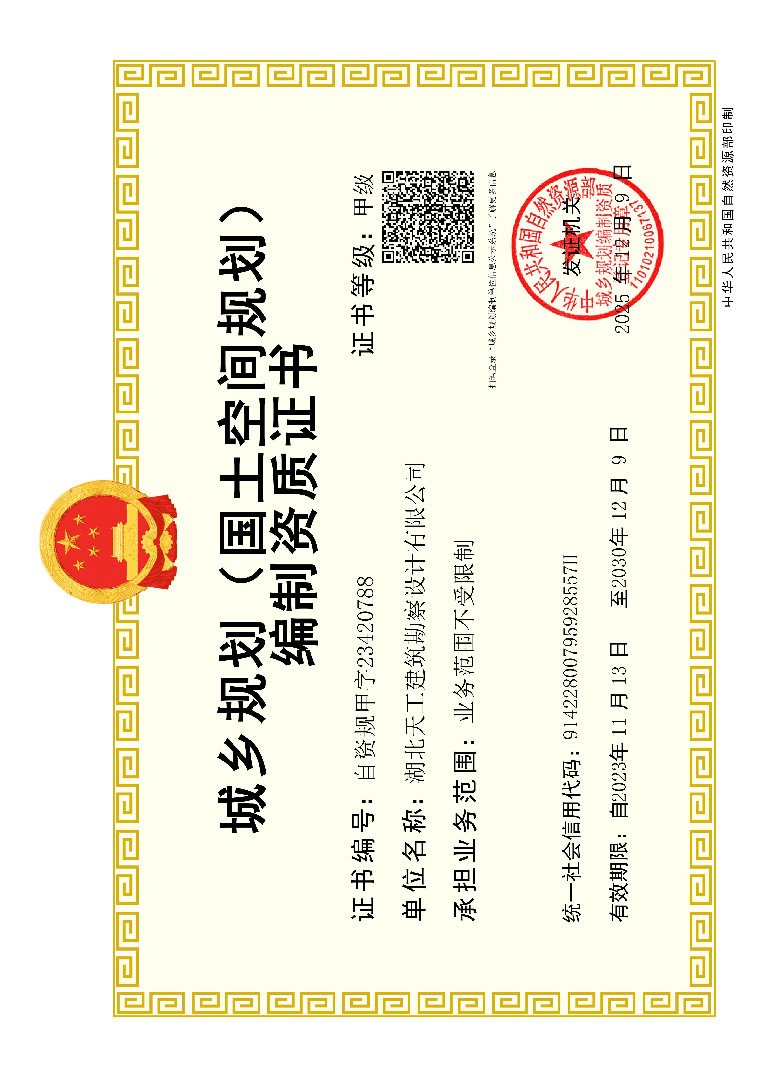 城鄉(xiāng)規(guī)劃編制資質(zhì)證書