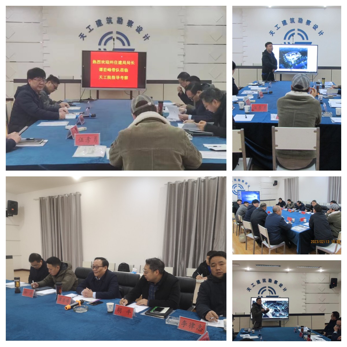 2023年2月13日上午,恩施州住建局局長譚若峰、總工胡平等一行蒞臨華德萊集團旗下的湖北天工建筑勘察設(shè)計有限公司(以下簡稱“天工院”)恩施總部考察指導。華德萊集團董事長金會容主持并攜各相關(guān)負責人參會。