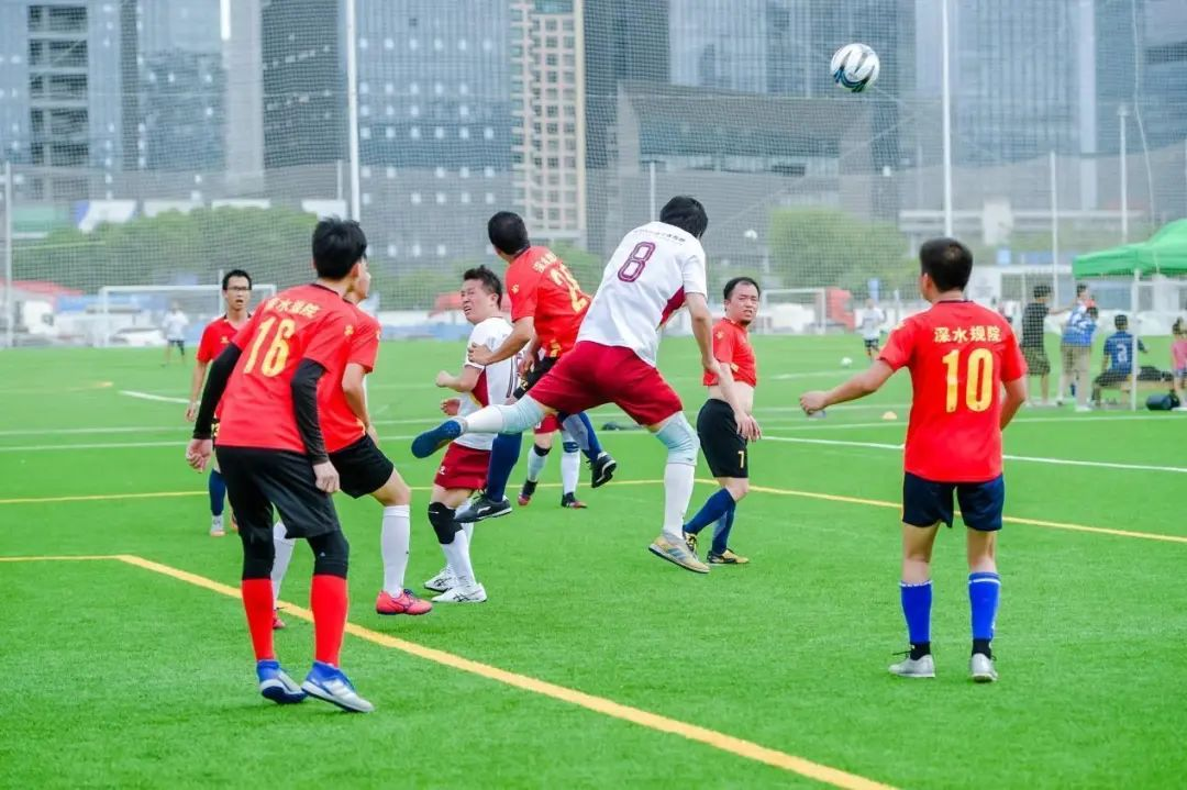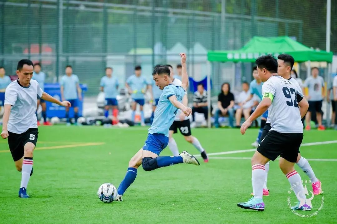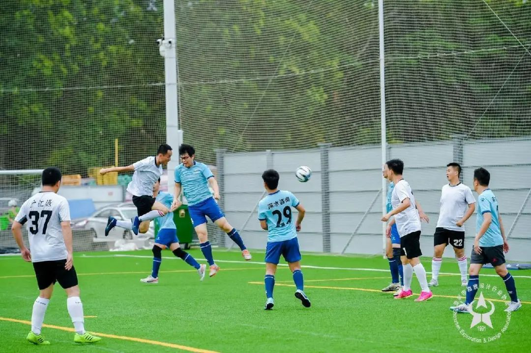 季軍爭奪戰(zhàn)在深水規(guī)院隊(紅色球衣)和華藝設(shè)計隊(白色球衣)之間展開。