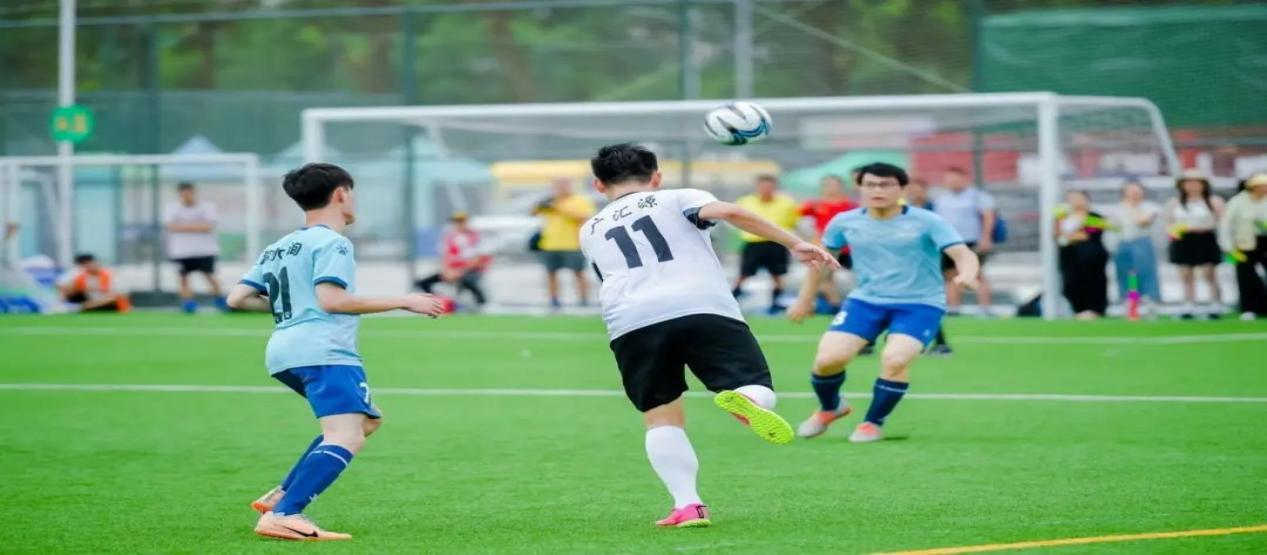 冠亞爭奪戰(zhàn)在廣匯源隊(白色球衣)和深水咨詢隊(藍(lán)色球衣)之間展開。