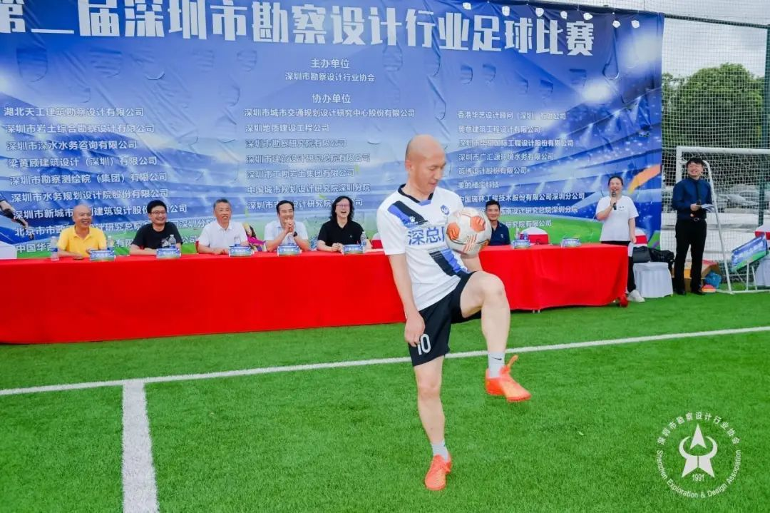 為了增強(qiáng)趣味性,展現(xiàn)勘察設(shè)計行業(yè)足球健兒們的基本功和個人技藝,特在閉幕式上加入了“顛球比賽”的環(huán)節(jié)。來自廣匯源隊的董粵、深水咨詢隊黎龍錕、深總院隊王嚴(yán)、華藝設(shè)計隊黃鶴鳴、奧意建筑隊金斌、深水規(guī)院隊黨晨席、深圳工勘隊韓偉智共7名選手代表,參加了顛球比賽。