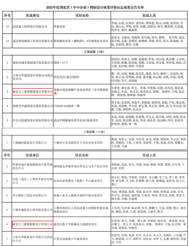 喜報│天工設計院獲2025年度湖北?。ㄖ行∑髽I(yè))勘察設計成果獎