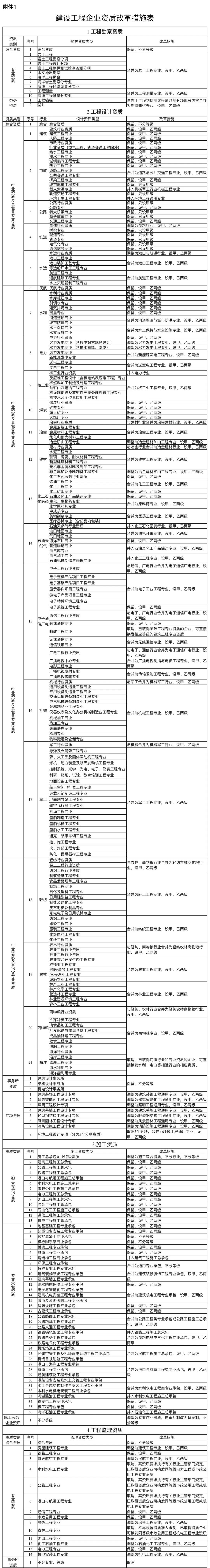 附件:1.建設(shè)工程企業(yè)資質(zhì)改革措施表