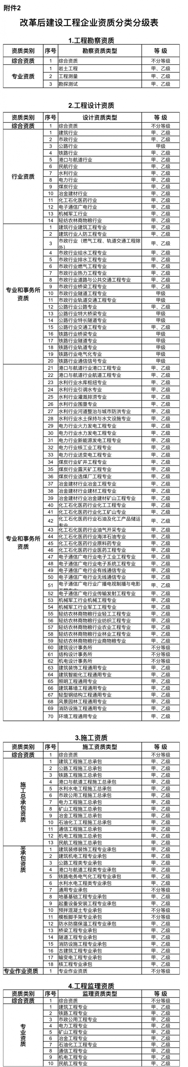 2.改革后建設(shè)工程企業(yè)資質(zhì)分類分級表